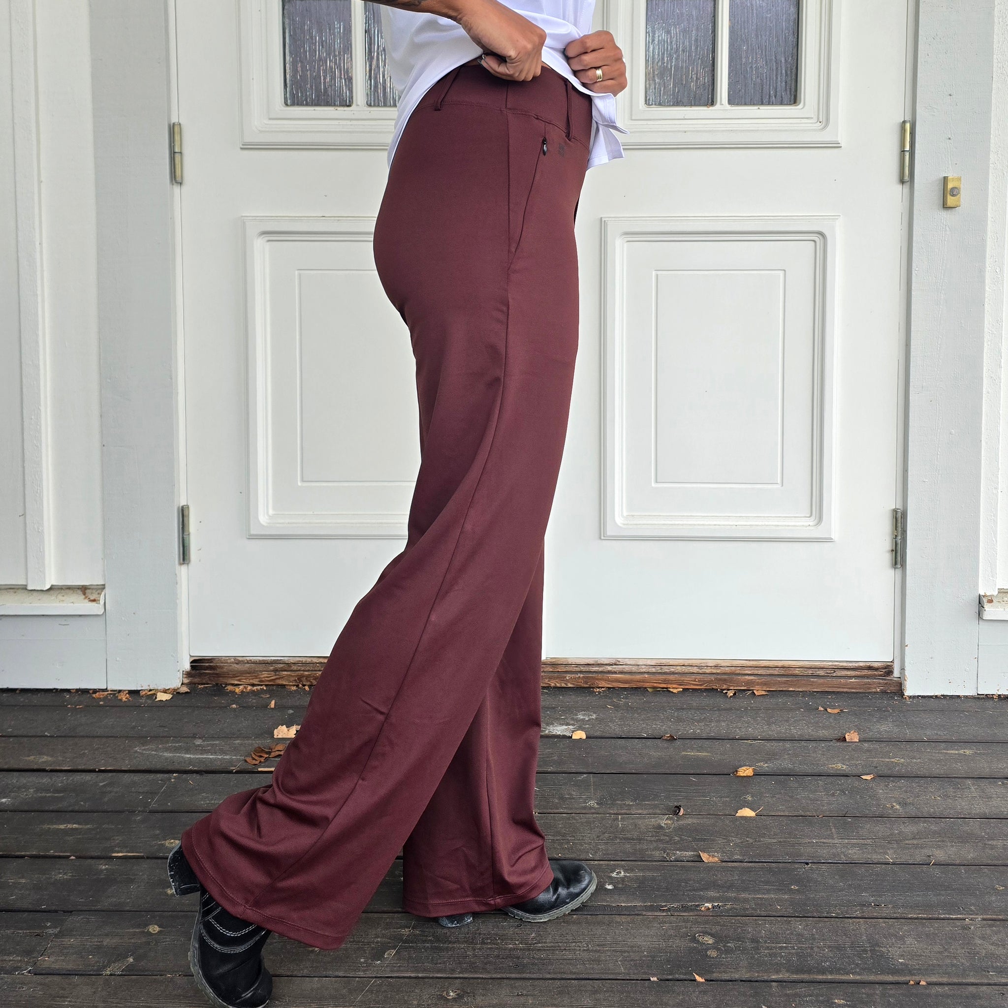 Lyxiga bruna byxor med raka ben och ledig passform. Ser ut som kostymbyxor, men känns som mjukisbyxor. Tillverkade i vår vanliga sköna polyesterblandning. Praktiska fickor med diskreta blixtlås på vardera ben. Extra hög midja med bälteshållare. Passar en aktiv livsstil och även perfekt för golfbanan. Innerbenslängden på dessa byxor är "Regular": 76 cm / 30 tum i alla storlekar. De finns även i en lång variant HÄR. Storlekarna är "normala", så välj den storlek du oftast använder på "vanliga" vardagsbyxor. Se även storleksguiden för byxorna bland produktbilderna. Du hittar även storlekstabellen HÄR (kom ihåg att kolla att tabellen specifikt gäller för byxor - inte underdelar).