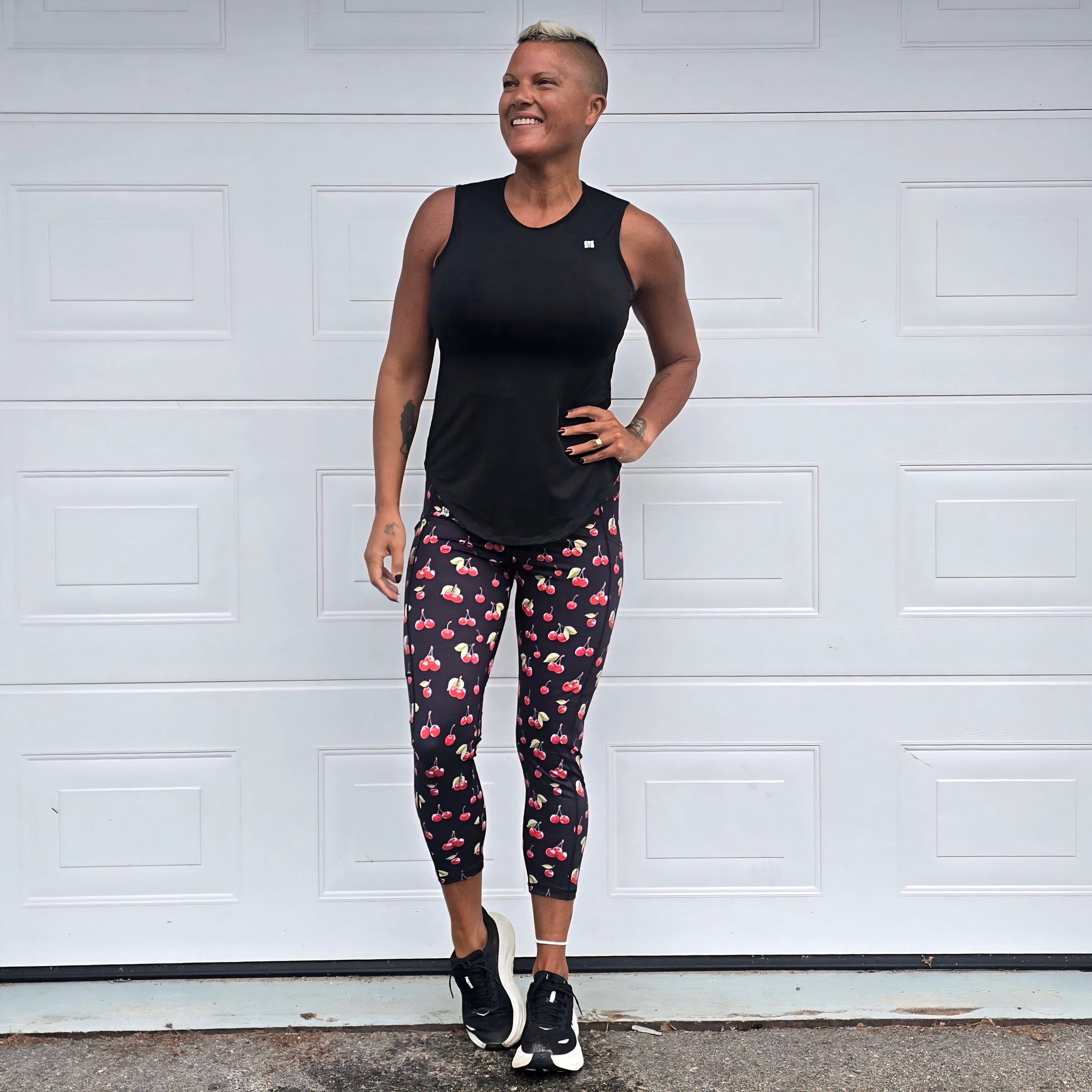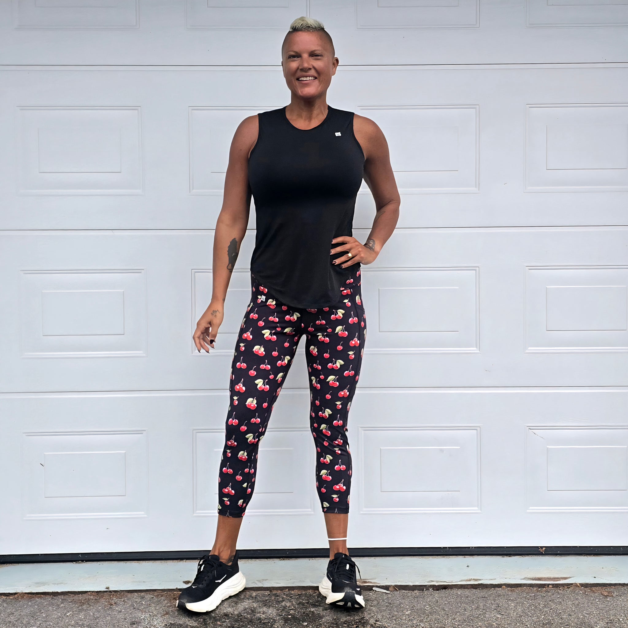 Våra körsbärsmönstrade träningstights är skapade för en aktiv livsstil. Basen är svart och längden är 7/8. De har två rymliga fickor för mobil/bollar/vattenflaska samt en dold nyckelficka. De har hög midja och genomtänkta sömmar som skapar en optimal passform och komfort. Hitta din storlek HÄR.